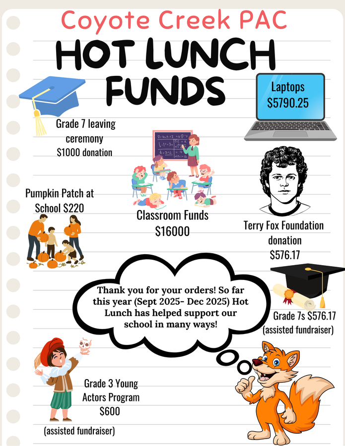 The hot lunch website and PAC email are run by parent volunteers. They may not be checked daily, but we truly appreciate your patience and will get back to you as soon as we can.